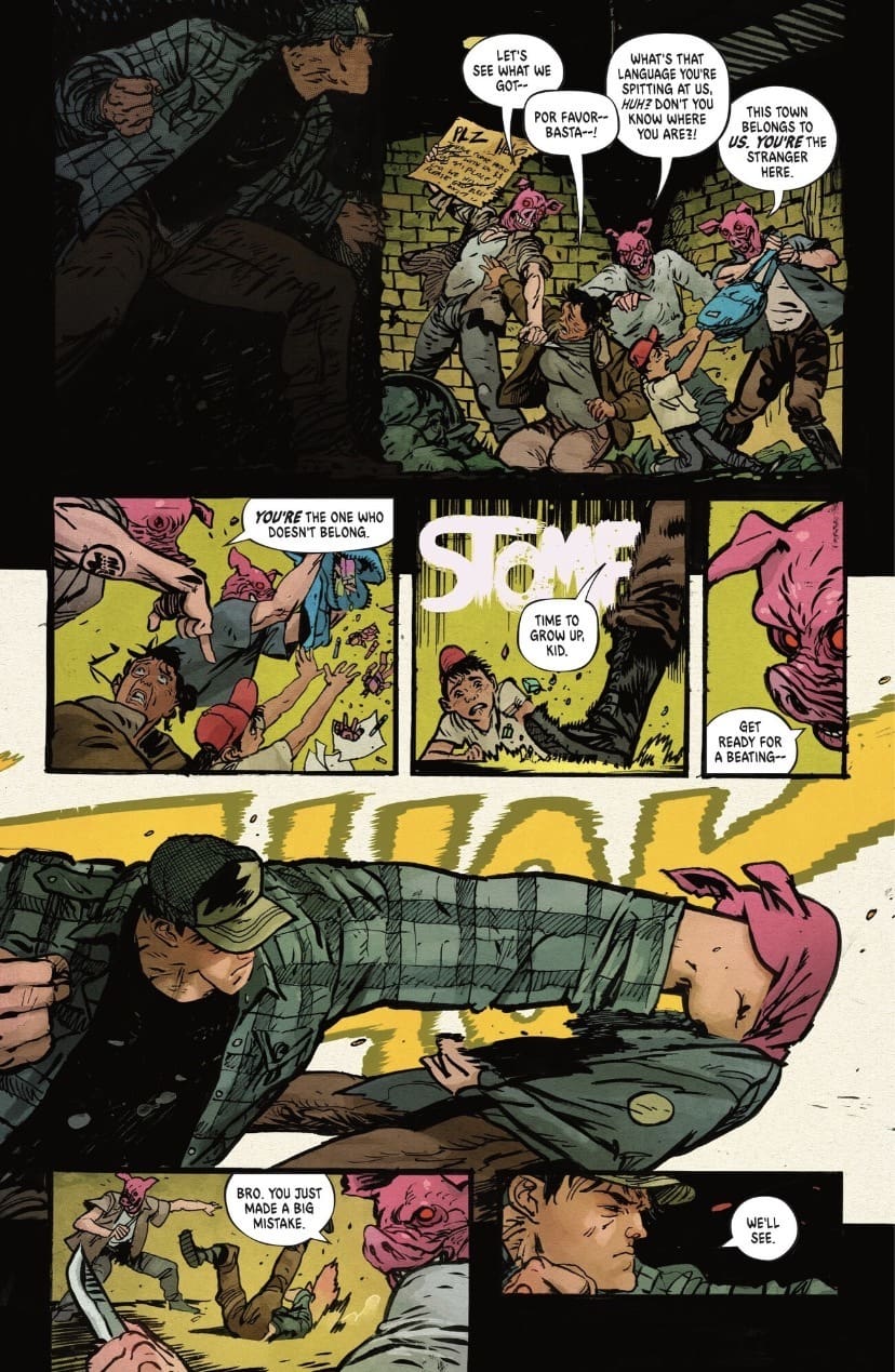 The central conflict revolves around a growing wave of emboldened bigots in Slaughter Swamp, led by the vile Deejay, who, along with some crooked cops, are terrorizing a local migrant camp. Johnson is brave enough to tackle this heavy, real-world subject matter head-on, making it clear that this Batman is fighting the worst of modern hate.