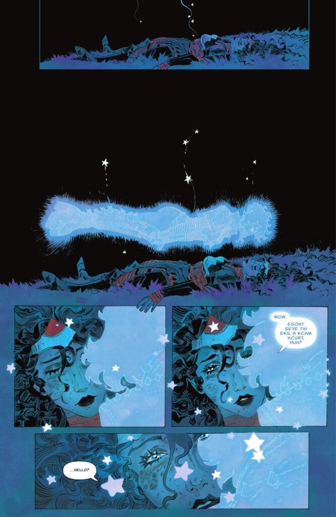Jordie Bellaire’s colors are, as always, doing heavy lifting. She creates a distinct separation between the magical and the mortal. The inverse creature is surrounded by sick, neon greens and electric blues that feel radioactive against the earthy tones of the Greek ruins. When Gaia appears, the palette shifts to deep, overwhelming crimsons and blacks, signaling that we have left the realm of superheroes and entered the realm of horror-fantasy. Finally, a special nod goes to letterer Becca Carey. Lettering often goes unnoticed unless it’s bad, but here it adds a crucial layer to the storytelling. It forces the reader to slow down and decode what Zatanna is saying, much like Diana has to.