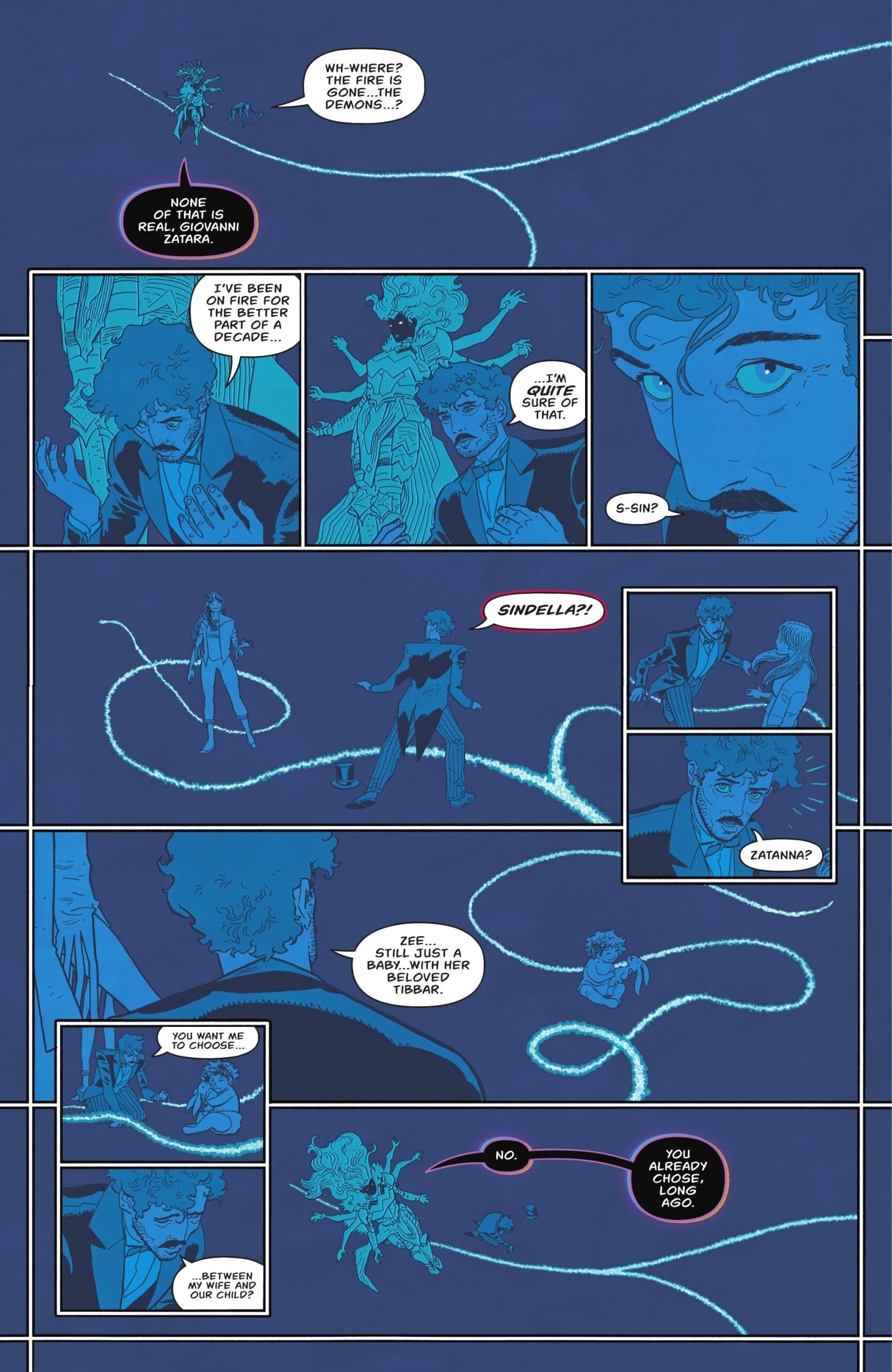Zatanna eventually breaks the cycle by pulling her father through a psychic doorway. This snaps the connection and leaves Diana catatonic, stranded at The Crossroads. The solution is clever and leans into the deep lore of the characters. Zatanna uses the Circe Stone to transform her appearance, tricking Diana’s mind into seeing her mother, Circe, so she can lead her back to safety. It’s a desperate, messy rescue that highlights the high stakes of this magic system and how chaotic this penultimate issue is. So much is happening in this chapter, and the team guides us through it all with absolute precision. Honestly, great work all around.