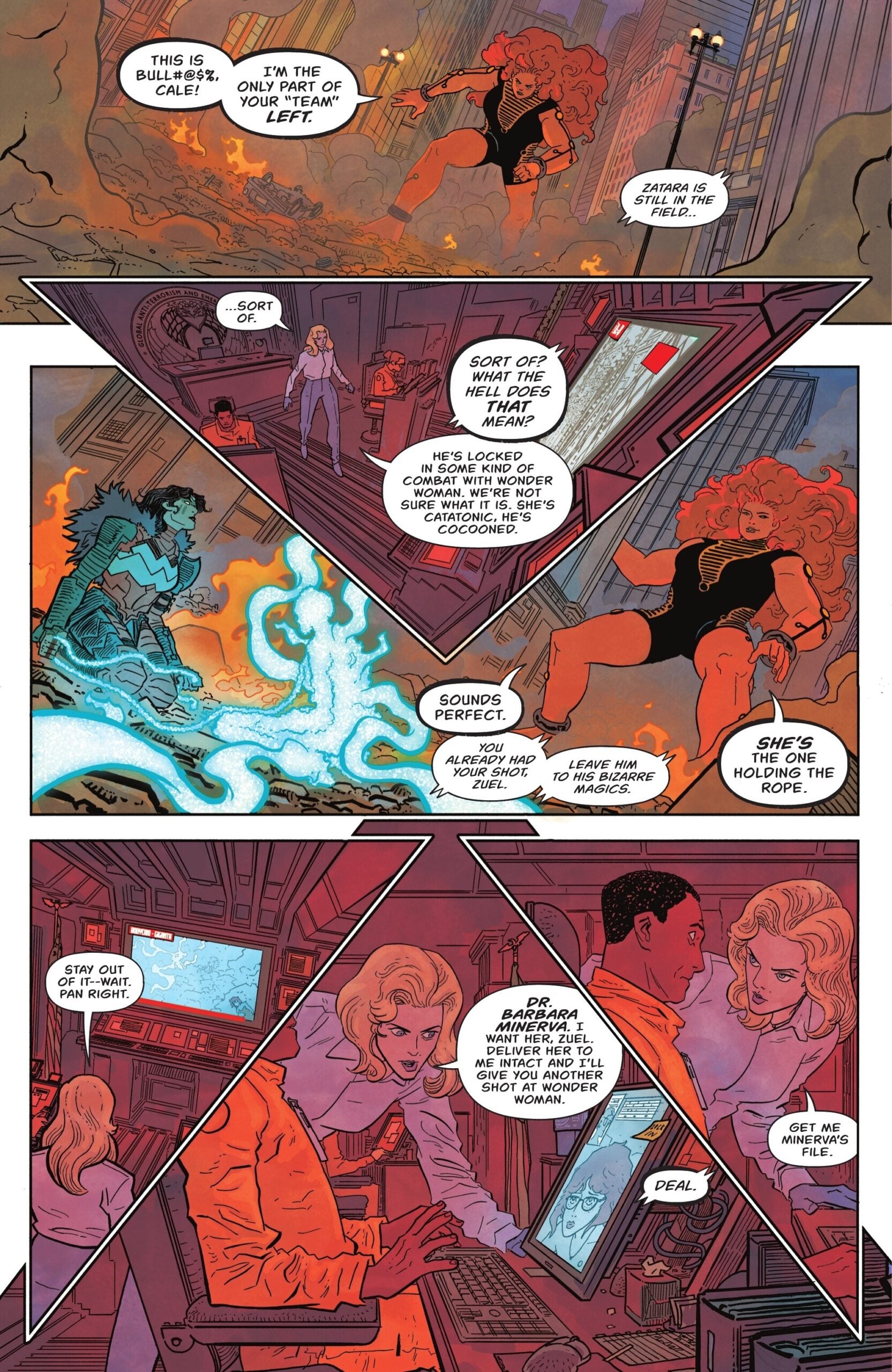While the heroes are melting their brains in the psychic plane, Veronica Cale is playing a much more grounded and ruthless game. She strikes a deal with Giganta to capture Dr. Barbara Minerva in exchange for another shot at Wonder Woman. Cale continues to be a cold, calculating antagonist who has zero patience for the bizarre magics she’s forced to deal with, but it’s also becoming clear that she is out of her depth here.