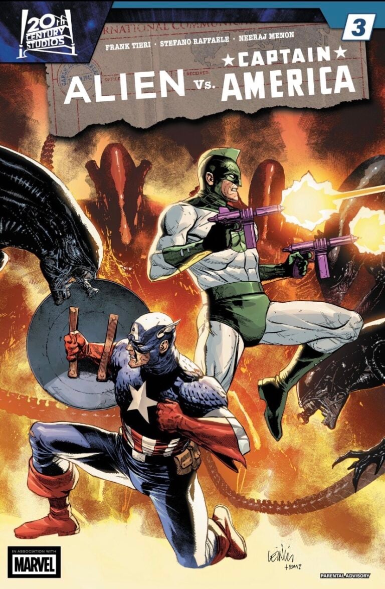 Alien vs. Captain America finds writer Frank Tieri taking a simple premise: what if Captain America fought the Xenomorphs during World War II and turned it up to eleven. Issue three doubles down on the chaos, giving us crucial information on why the Kree came to Earth and the Red Skull’s ultimate plan. The stakes are through the roof as Cap and his friends are no longer just fighting for their side anymore; they’re trying to save the world.