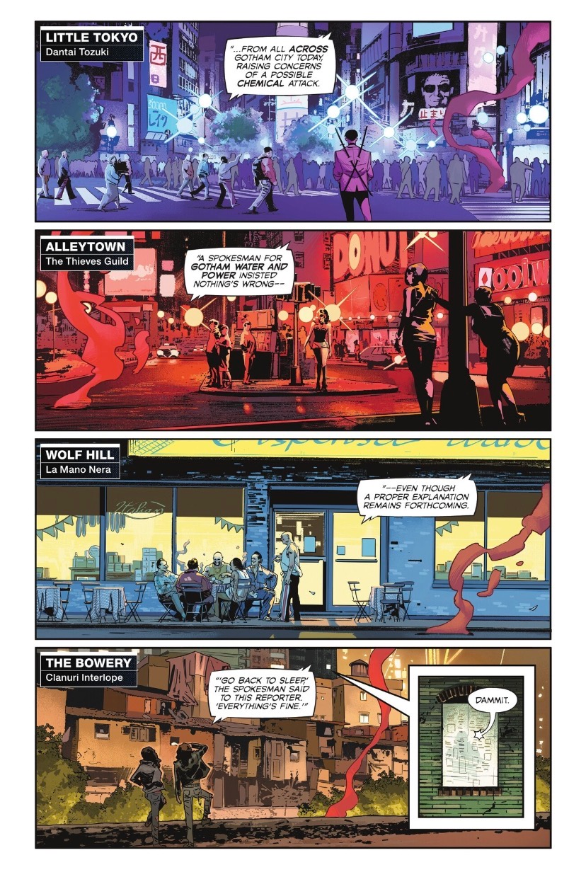 If there is one takeaway from Batman #4, it’s that organized crime in Gotham has become really, really organized. Matt Fraction and Jorge Jimenez are starting to let the dominoes fall, and while the Dark Knight shows up a little late to the party this issue, the payoff is absolutely worth the wait.