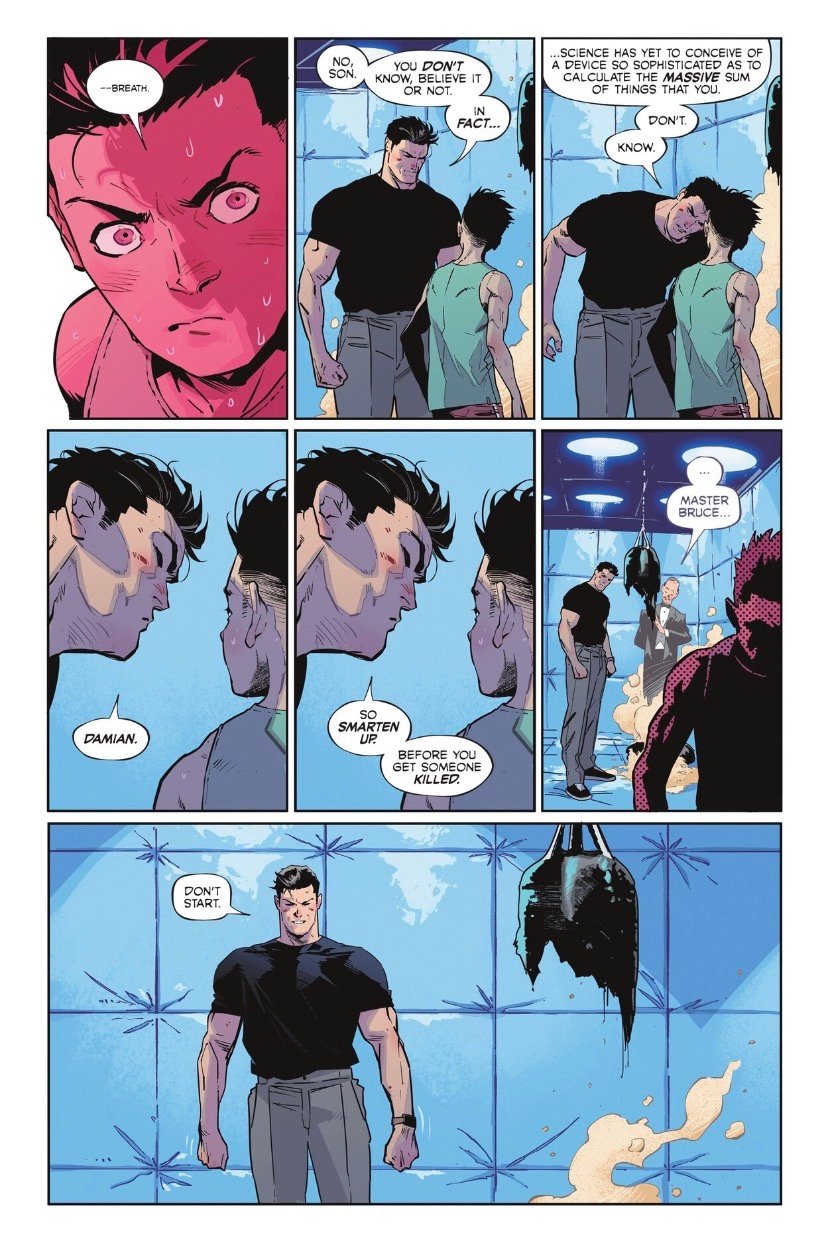 There is a degree of dissonance, however, in the designs Jiménez has for both Damian and Tim, who feel especially young despite the writing and plot beats giving both a strong degree of maturity and growth. It’s just a bit bizarre to see Damian looking so young while also having a college acceptance letter sitting in his trash.