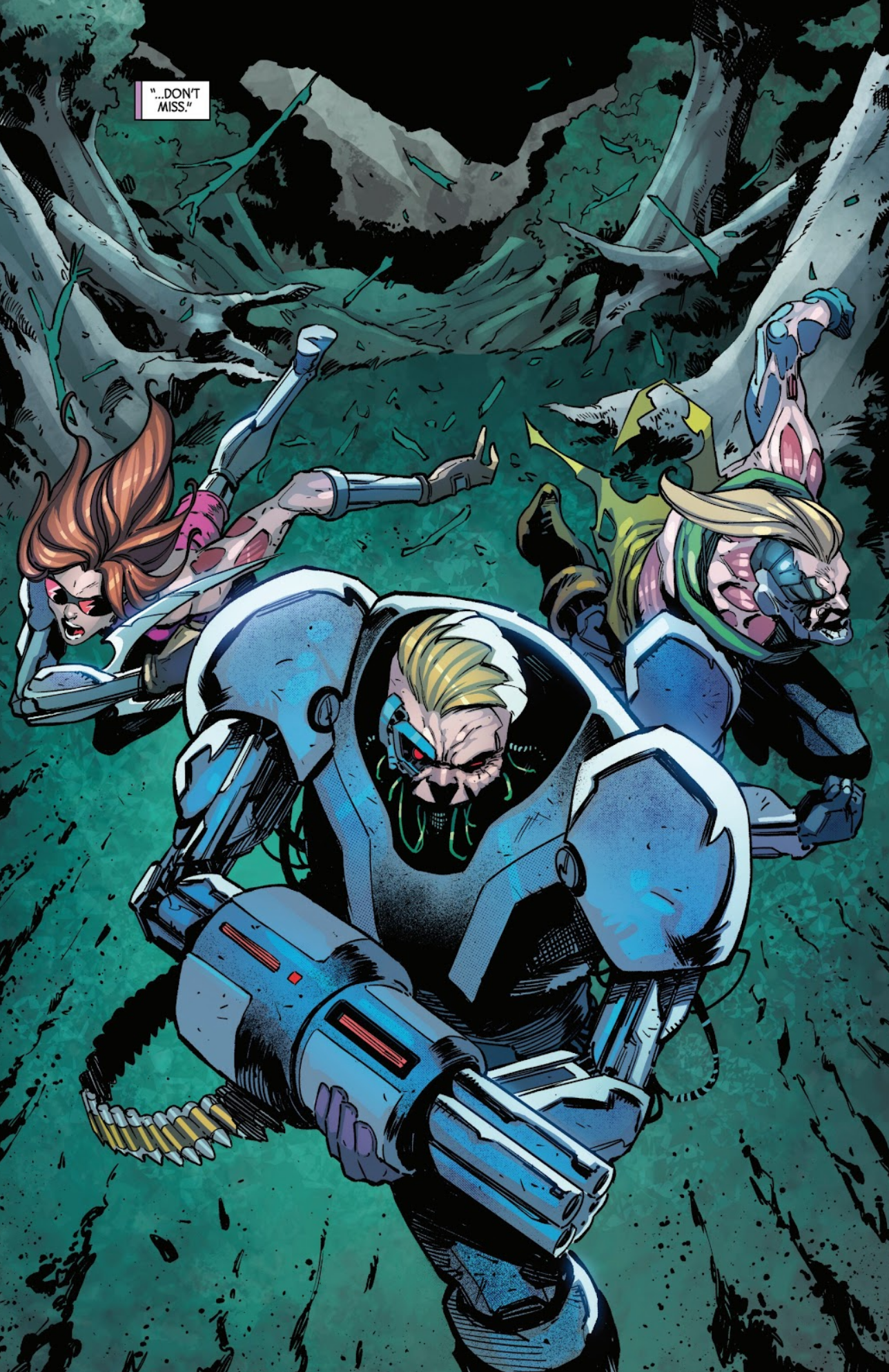 When we last checked in on Cyclops, he was wounded in the middle of the Canadian wilderness. His visor had been broken, and the accidental beam he released was spotted by several people. Among them, Reavers. Led by Donald Pierce, Alex Paknadel has reimagined the cybernetic warriors, casting them in a more brutal, bloody lens. More crudely put together, with terrible, contorted bodies, these warriors of hate are painful to look at, but deal enough misery onto others that a reader’s empathy will be limited.