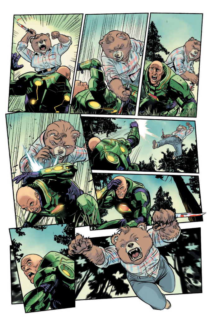 “Patrick Horvath created an incredibly complicated and frankly, scary, character with Samantha Strong,” shared Jeremy Adams. “I feel lucky to be able to pit this serial-killer bear from IDW’s Beneath the Trees Where Nobody Sees against the greatest criminal mind of our time, Lex Luthor. Especially because Lex has no idea who it is he’s stumbled upon. And, having written four animated Mortal Kombat movies, I jumped at the chance to write more of the Netherrealm world, especially for comics. These characters hold a place dear to my heart as I’ve had the chance to interact with a huge swath of their fandom, their creators, and the MK universe as a whole!”