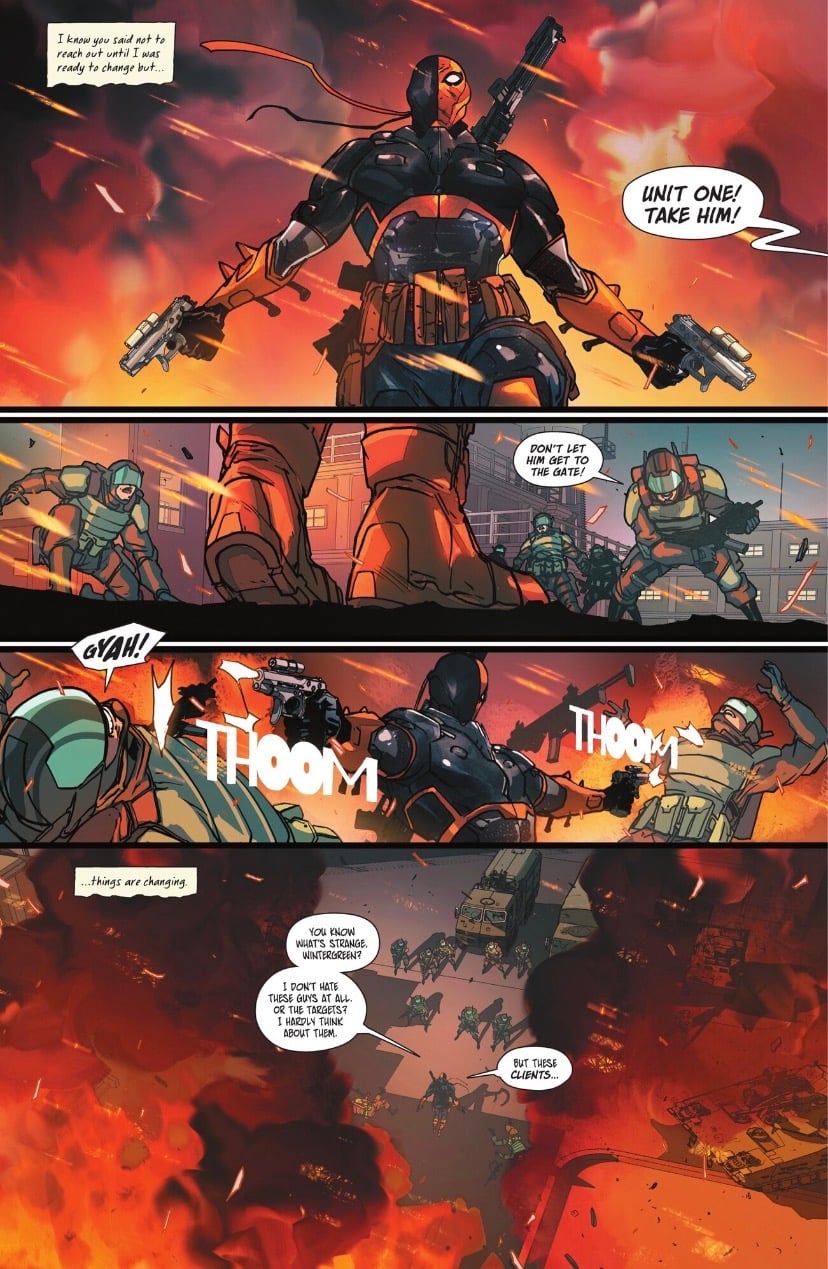 You don’t need a PhD in DC lore to jump into this one. While Christopher Priest’s 2016 run is still the gold standard for complex family drama, writer Tony Fleecs takes a different path here. He’s leaning into the “assassin-first” vibe but still keeping the supporting cast front and center. The issue opens with Rose Wilson and Wintergreen having a heart-to-heart. They realize Slade is off-balance. He’s a guy who needs a mission to function, even if that mission leaves a trail of bodies across the DCU.