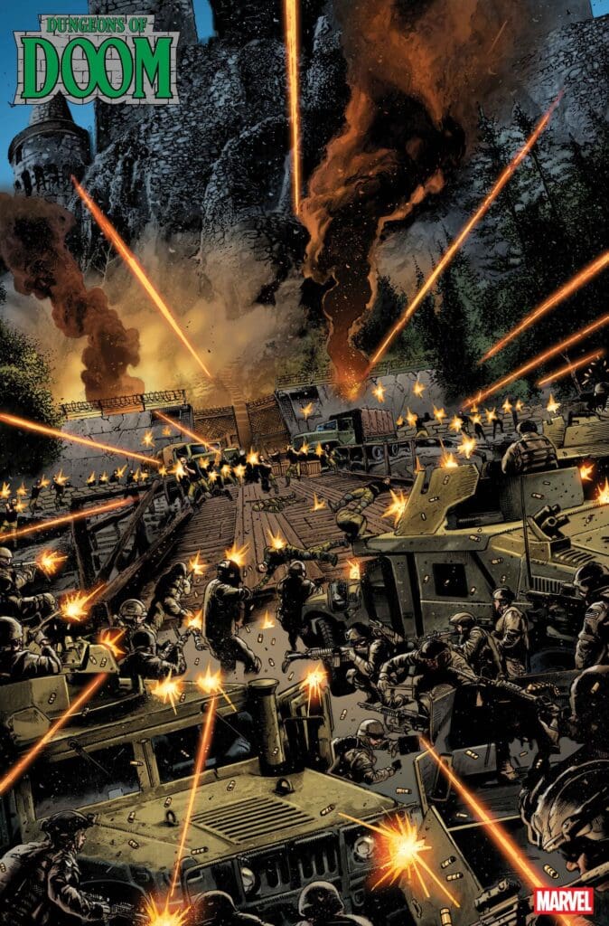 Dungeons of Doom #1 explores the smoldering aftermath of One World Under Doom. Latveria has fallen into anarchy, and it has become ground zero for an all-out arms race. Various factions are converging on the castle, desperate to loot the former Emperor’s secrets before anyone else can. This issue features stories from powerhouse writers Phillip Kennedy Johnson and Benjamin Percy, who are setting the stage for the future of the Marvel Universe.