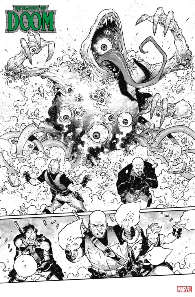 What happens to a dictatorship when the dictator disappears? Marvel is about to answer that question in the explosive new anthology series, Dungeons of Doom. With Doctor Doom gone, the vaults of Latveria are wide open, and the race is on to claim the dangerous technology and eldritch horrors hidden within.