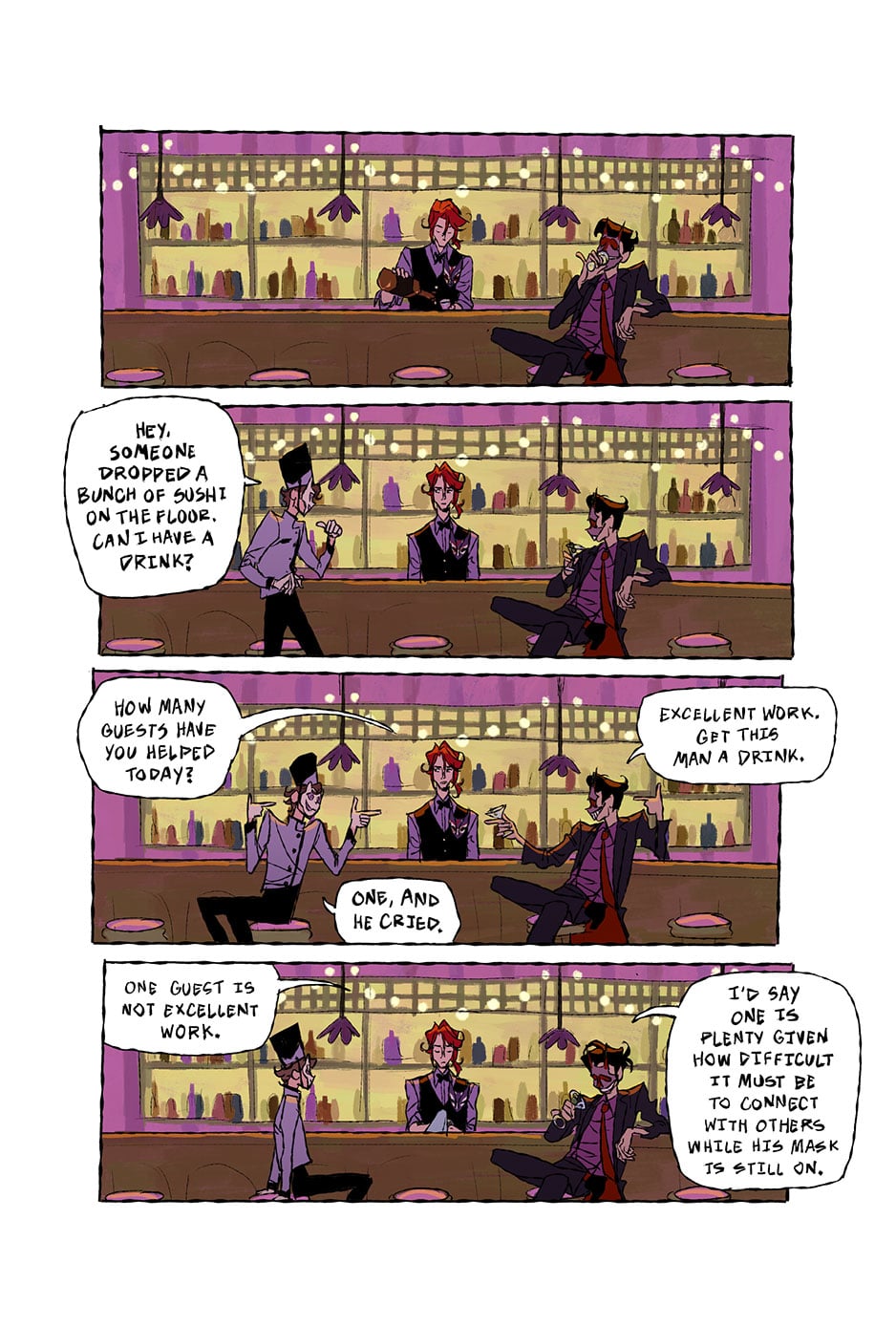 You can pick up the full-color softcover edition of Hotel Limbo (Book 1) starting April 14. The book will retail for $19.99 and carries the ISBN 978-1-60309-587-7.
