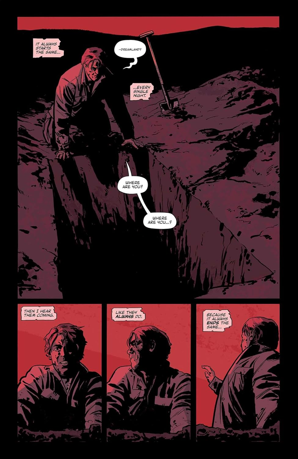 Everyone in Caverton is a zombie. Brombal doesn’t bother with long-winded explanations about how it happened. We just know that Jack is immune. The undead leave him alone as long as he keeps them fed and maintains the illusion of their old lives. He helps them go through their everyday routines. It’s a devastating look at how far someone will go to keep their family “alive” when the rest of the world has ended.