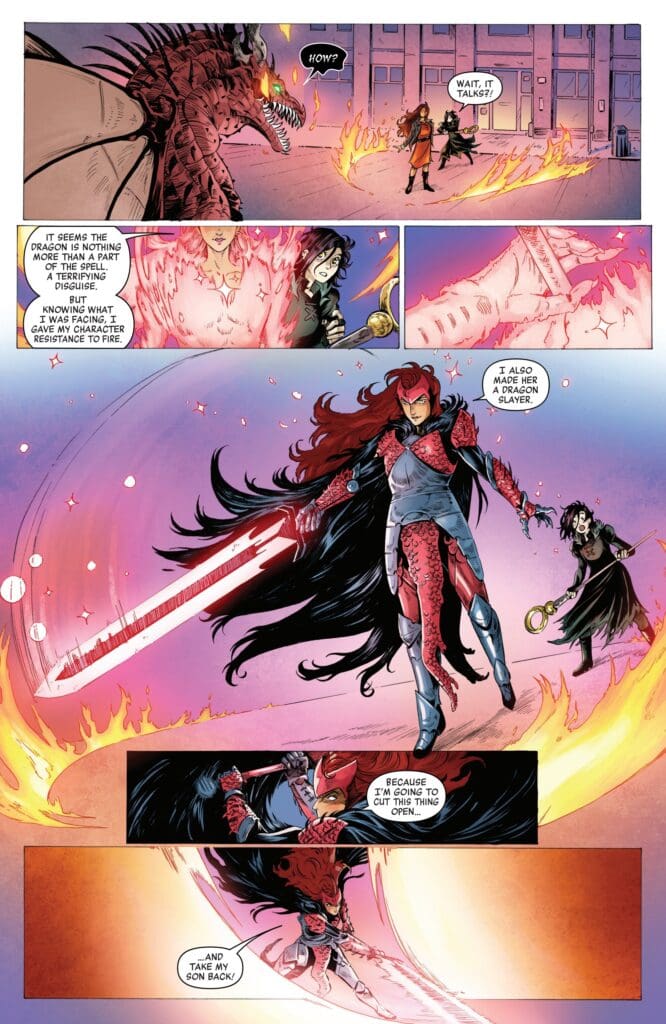 For starters, it throws you right into the action with fan-favorite magic users Nico Minoru and the Scarlet Witch, Wanda Maximoff. Nico, who can turn any word into a magic spell with her Staff of One, finds herself on a wild goose chase after a terrible game-night-turned-real, with a dragon chasing her through the streets of Manhattan.