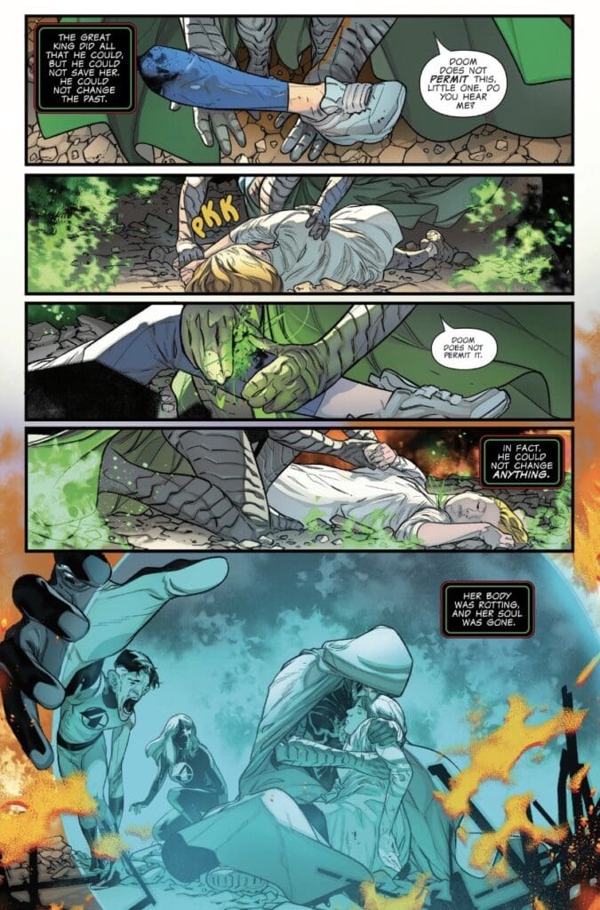 But, unbeknownst to Doom, the seeds of his downfall were planted in that exact moment of triumph. Faced with an intolerable loss that he can’t just magic away, Doom has to make a choice he can never undo, and the rest of the world is going to pay the price.