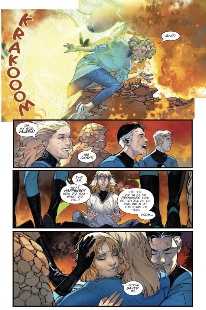 However, the biggest reveal is that Doom isn’t dead… at least, not yet. He and Mr. Fantastic trade verbal jabs about fascism and conquering the world, leading to a massive revelation regarding The Will of Doom. It states that when Doom actually dies, all his technology, secrets, and his country will go to whoever claims them first. Now, everyone is going to want a piece of that Doom pie, paving the way for the Armageddon event coming next year.