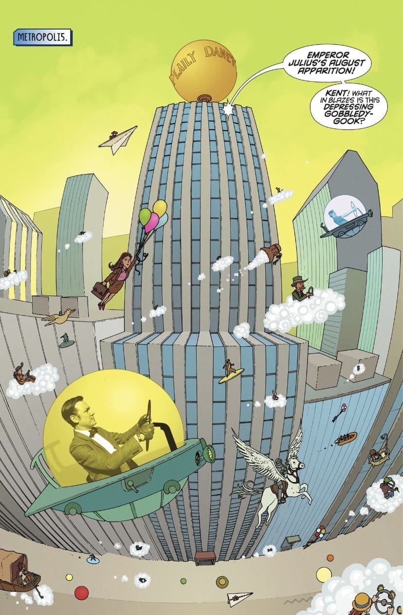 Seriously, this issue is a fantastic, mind-melting ride that splits the plot between two totally wild realities, giving you whiplash in the best possible way. On one side, we find Clark Kent trapped in the Fifth Dimension, which is just pure, unadulterated nonsense. This is where the comic really shines: throwing out brilliantly surreal moments. Examples include Perry White’s disdain for juggling walruses, an apartment landlady who only accepts nickels for rent, or the unexpected power of real photos interspersed directly into the panels. It’s an absurdist nightmare that feels like something Salvador Dalí dreamed up: yet somehow, it manages to be laugh-out-loud funny and deeply unnerving all at the same time.