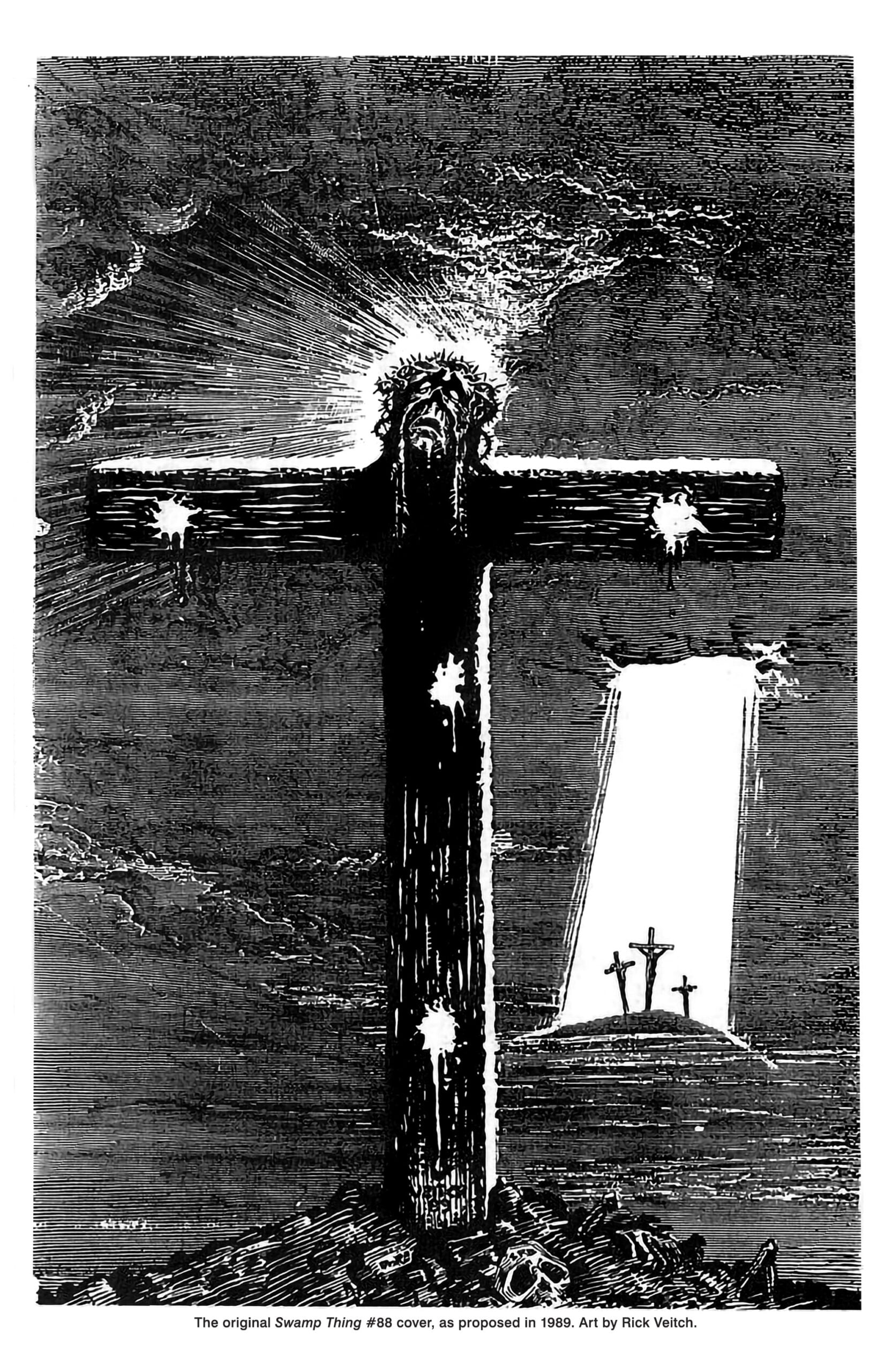 Rick Veitch had the script and pencils approved, but the cover art (which depicted Swamp Thing as the actual wood of the cross) was the breaking point. When DC pulled the plug, Veitch walked. It was a move that actually derailed planned runs by Neil Gaiman and Jamie Delano, effectively ending one of the most creative eras in what would become Vertigo before the imprint even had a name.