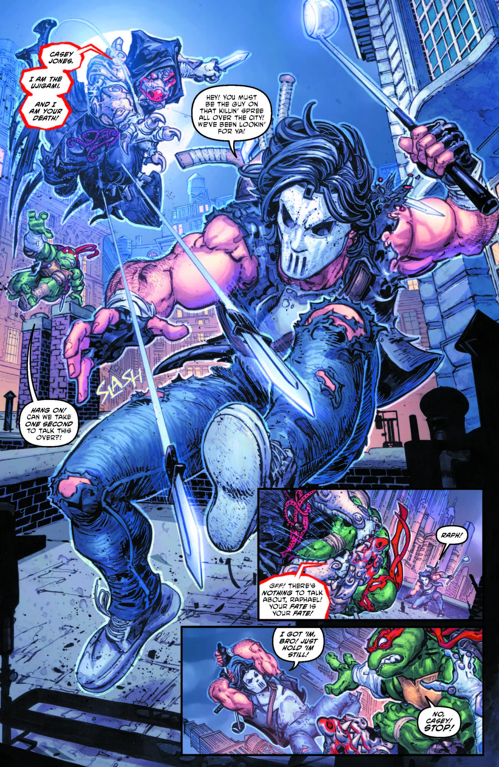 Raphael is between a rock and a hard place. Master Splinter is attacking his best friend, Casey Jones, because of an ominous vision. Casey will be the one to kill Raphael. This creates an immediate problem. Last issue Raphael was Splinter’s biggest defender, arguing that if their Master had decided killing the bad guys is okay, then that’s the path they should follow. That conviction changes now that the target is someone Raphael is close to. Luen Yang cleverly uses this cognitive dissonance to earn genuine growth from the normally stubborn turtle.