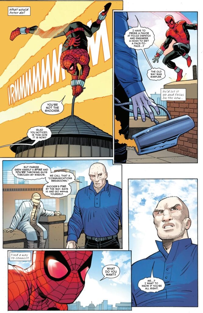 May gets an important scene here, too, reminding us that she can still be an iconic character. Though not Peter’s biological mother, her speech on motherhood and her support for Peter in his own way are among the best she’s written in a while. Tombstone, however, has the most head-scratching arc. Surprisingly, it seems he cares about Spider-Man, or at least the good Spidey can do for his streets. It’s an out-of-left-field development that doesn’t work when most of the Zeb Wells run established them at each other’s throats.
