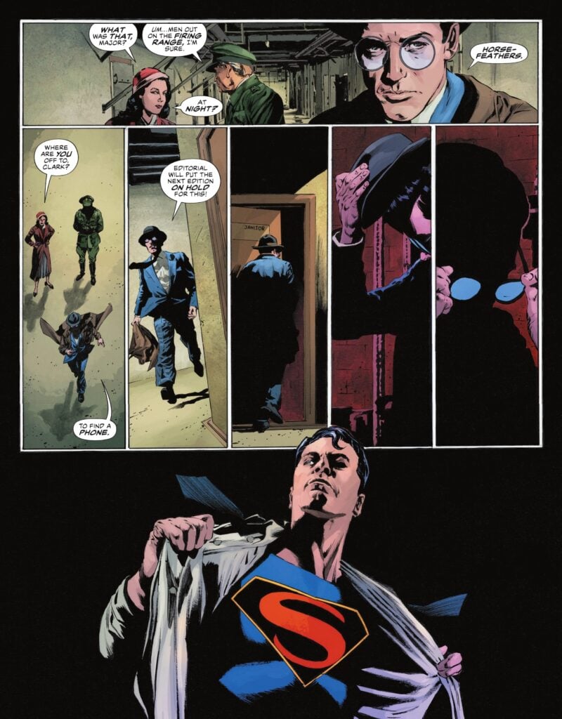 The issue expertly weaves two parallel threads. In the present, Bruce Wayne is recovering from a knife stab while trying to piece together how he and Lois were both drugged into a state of irrational terror. This leads him to his father’s old war files, revealing a connection to an Army chemist named Crane, a man obsessed with turning the terror of the trenches into a weapon.
