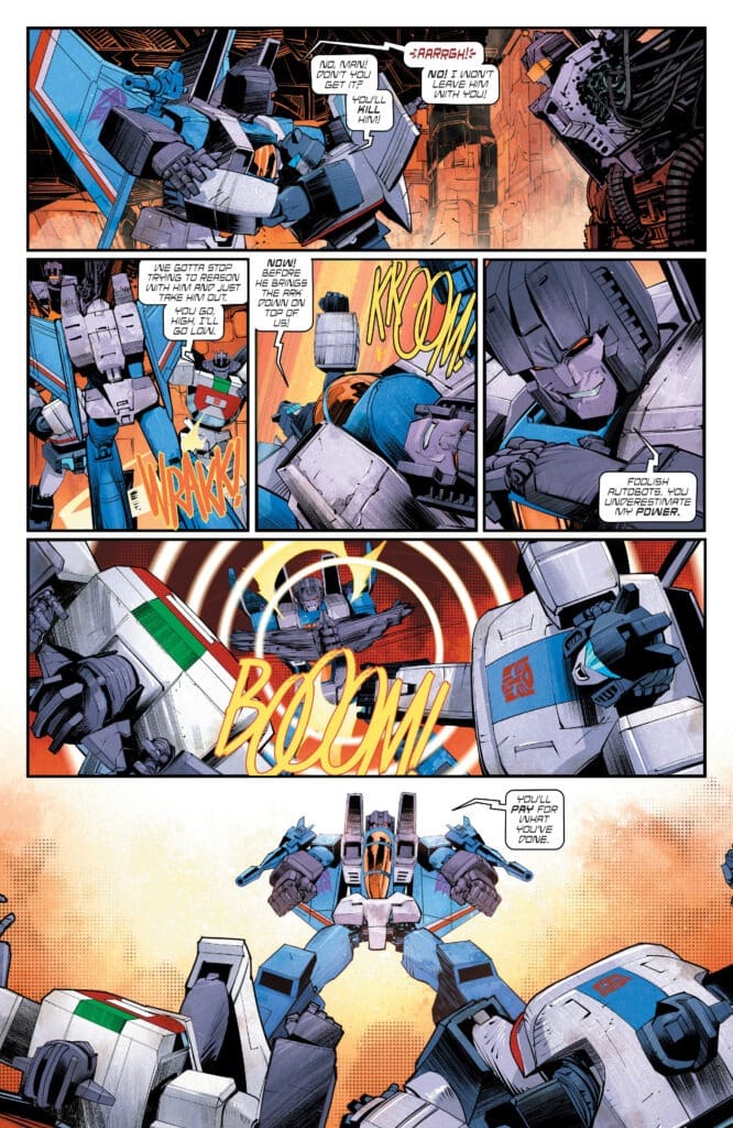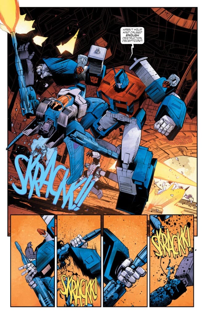 While the plot unfolds with relentless energy, the heart of this issue lies in Thundercracker’s internal conflict, which takes center stage, lending emotional depth to the chaos.