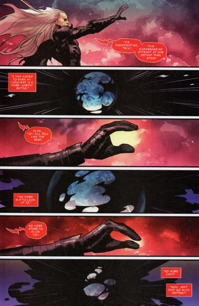 Which all comes to culminate in issue #5, which adapts the modern stories of the 2020s through an homage to King in Black. The great showdown with Knull and the heroes is one to read and is instantly memorable.