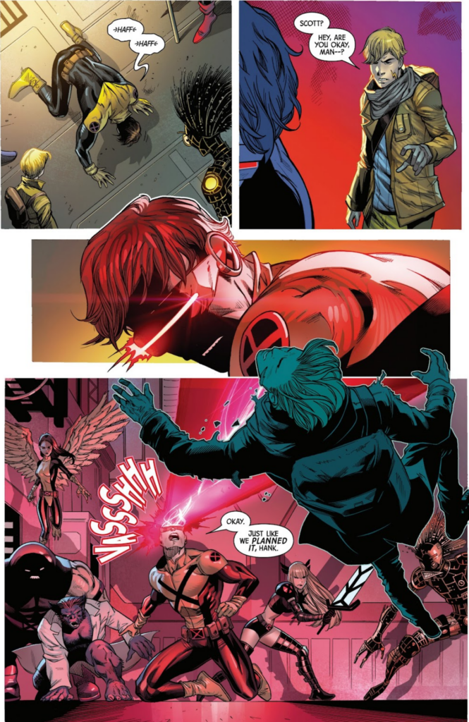 The conversation between Bei and Doug is a good one, as is Temper’s inclusion in the situation. There is strong character work with Beast, who is angry and confused by the future Cyclops, worried about his version of Cyclops, and where he could be. Magneto and future Cyclops also speak, with a surprising discrepancy between the future this Cyclops is from and Magneto’s present condition arising. R-LDS, the condition Magneto is plagued by, has been mysterious for some time now. Future Cyclops seemed to be unaware that Magneto had it or was afflicted by it. It’s a twist that raises some questions, some conclusions better than others. But it’s certainly more mystery to the mystery box approach Jed MacKay has taken with his X-Men run.