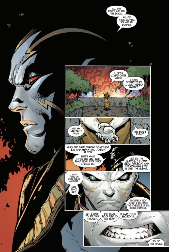 It doesn’t feel like a true finale in that sense; the dark and gruesome ending feels contrived rather than earned. Revelation’s threat from the very beginning has been suspect and not entirely well-explained. Seeing a villain on such shaky grounds succeed feels strange and unsatisfying, particularly as Revelation himself feels closer to villains like Stryfe or Cameron Hodge, perennial punching bags, rather than to Apocalypse or Magneto.