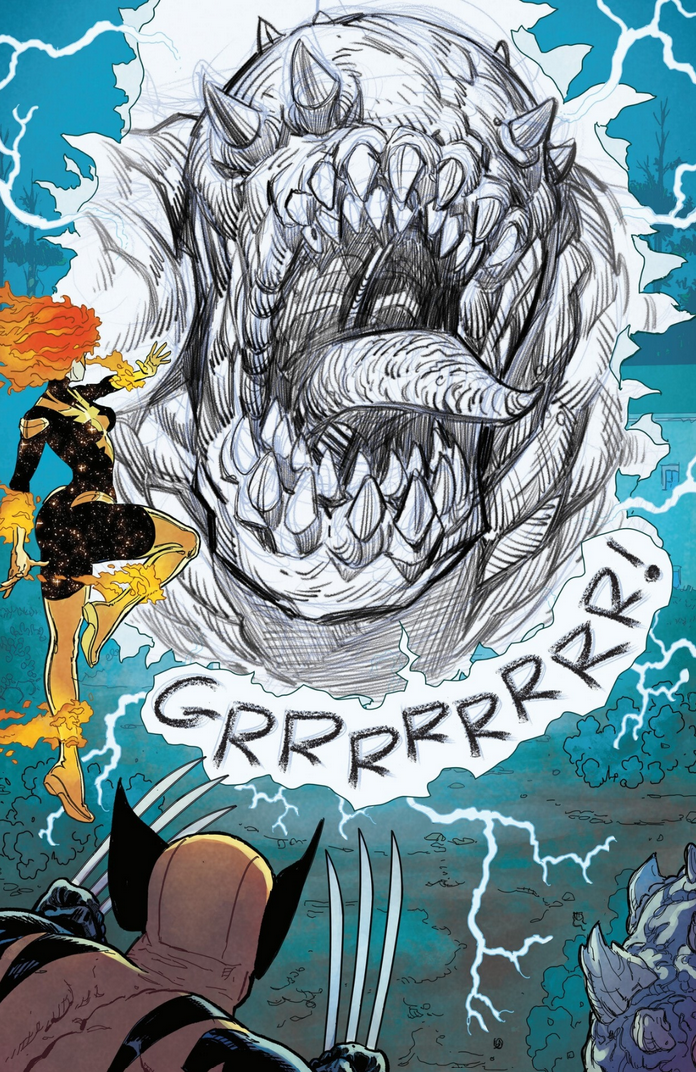 The issue begins with Phoenix encountering the Uncanny X-Men, noticing a disturbance in reality, and a voice calling out. The team is soon beset by monsters that initially appear as sketched designs before fully occupying reality and becoming whole and fully colored. They are concepts that are being actualized, says Phoenix, and the X-Men are swift to battle the creatures.
